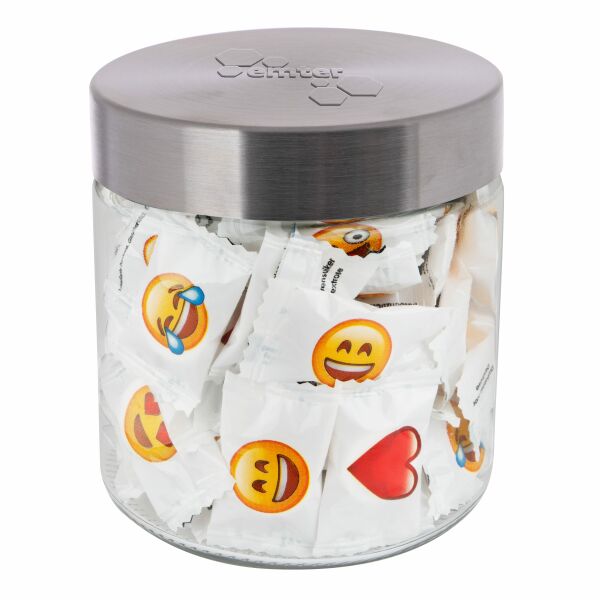 - Glazen pot 0,9 liter met embossing, gevuld met snoep