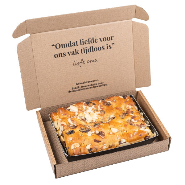Ambachtelijk brievenbusstol met zuivere amandelspijs en amarenakers! Bereid met enkel zuivere ingrediënten en 100% pure amandelspijs. Bij uitstek geschikt voor Kerst en Pasen. De brievenbustaart wordt gepersonaliseerd met een eetbaar logo, gedrukt met eetbare inkt op een suikerplaatje.